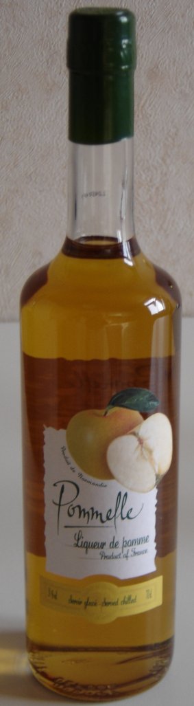 Liqueur de pomme. Ingrédients : Jus de pomme, Calvados pays d'Auge Controlée, sucre, arôme naturel. Colarant : caramel.